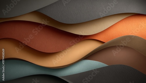 The abstract background comprises layered, flowing wavy forms in subdued earth hues such as beige, cream, brown, and gray, with organic curves providing a soft texture and subtle motion reminiscent