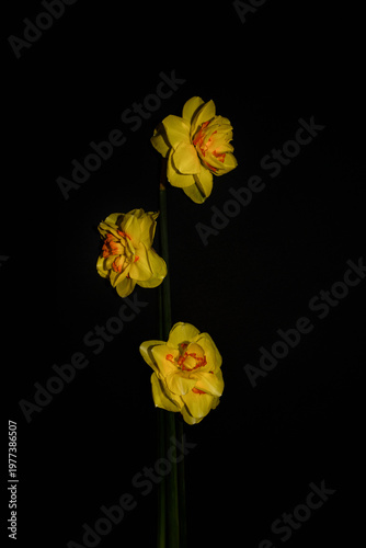 Delikatne pełne żonkile na czarnym tle – subtelność i elegancja natury