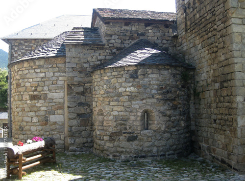 Pireneje, Hiszpania - romański kamienny kościół w dolinie Vall de Boí