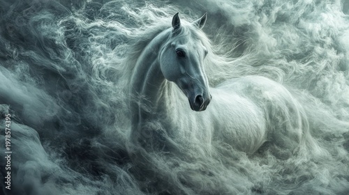 Majestic White Horse in Smoky Mist (11)