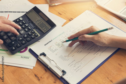Business and finance concept of office working, Businessman discussing sale analysis Chart