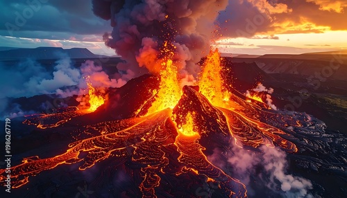 Fiery eruption at sunset