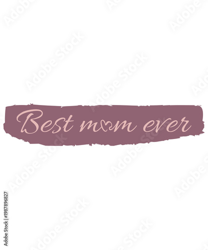 Best Mom Ever Typography on Dusty Rose Brush Stroke, Hand-Drawn Calligraphy with Heart Detail, Mother's Day Aesthetic Design Element, Minimalist Illustration for Greeting Cards and Apparel