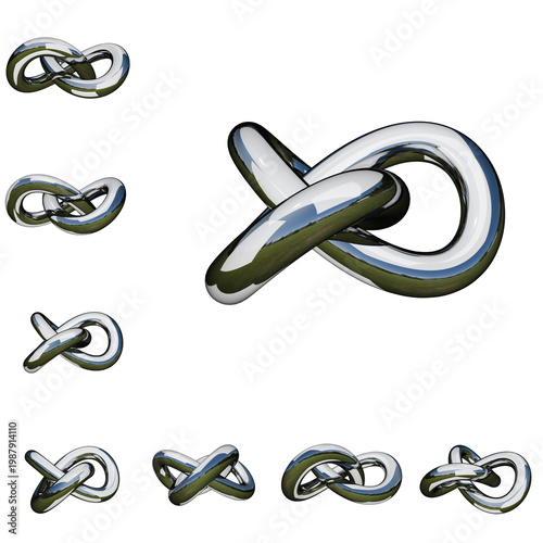 Infinity Knot Chrome Sculpture – Abstract Metallic Loop, High-Resolution 3D Render, 360° Rotation, Isolated on Transparent Background