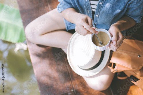Coffee cup in woman hand.
