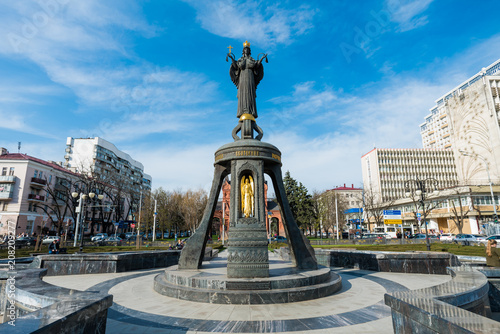 Krasnodar, Russia - April 06, 2018: Saint Catherine Bell at the Central district of Krasnodar. Monument of holy Great Martyr Catherine near The Royal Gates