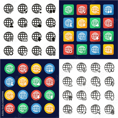 Modern Globe Icons All in One Icons Black & White Color Flat Design Freehand Set