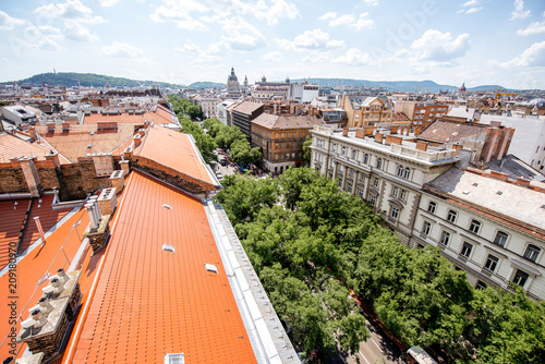Top view on Andrassy avenue with old residential buildings during the daylight in Budapest city, Hungary