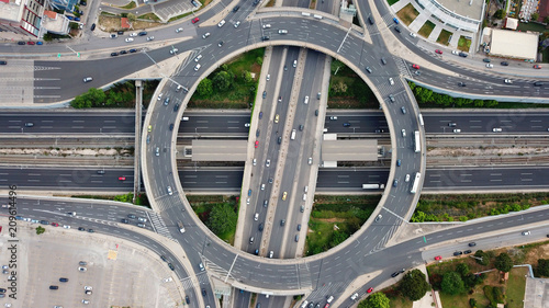 Aerial drone photo of popular highway of Attiki Odos multilevel junction ring road, passing through Kifisias Avenue in Marousi