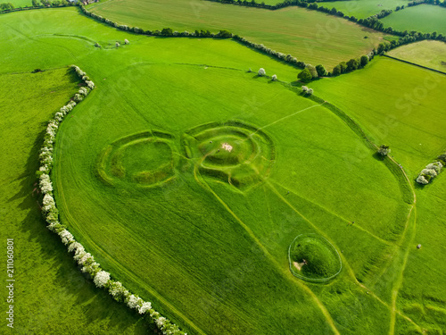 Aerial view of the Hill of Tara, an archaeological complex, containing a number of ancient monuments, County Meath, Ireland