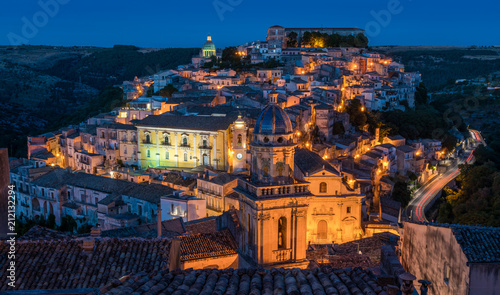 Ragusa at sunset, famous baroque city in Sicily, Italy.
