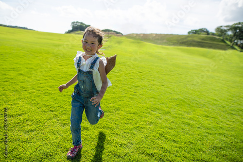 草原を走る女の子