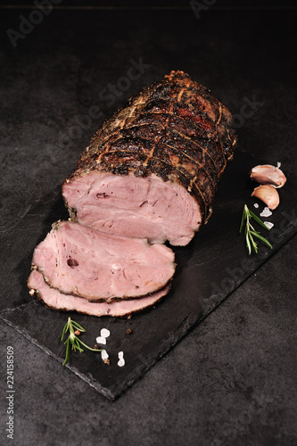 Mięso pieczone z ziołami. Tradycyjna wędlina w kompozycji z ziołami i przyprawami.