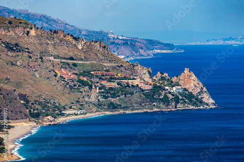 Beach view from Taormina. Taormina has been main tourist destination in Sicily since the 19th century. Taormina, Sicily, Italy.