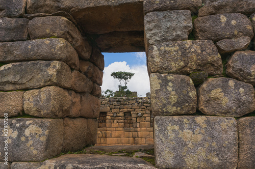 Fenêtre temple sacré Inca Machu Picchu Huayna Picchu Pérou