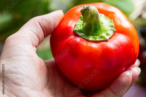 one big whole pepper in hands