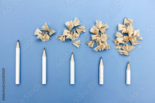 Serie mit 5 Stiften die immer kürzer gespitzt sind