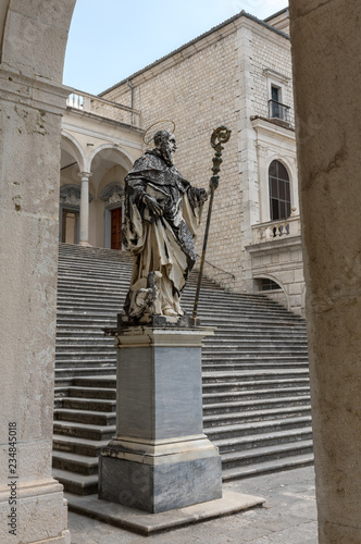 Marble statue of St. Benedict by P. Campi of Carrara, Cloister of Bramante, Benedictine abbey of Montecassino, Monte Cassino