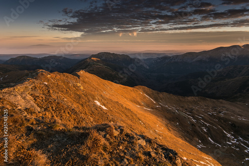 Tatry Zachodnie o wschodzie słońca widziane z Bystrej.