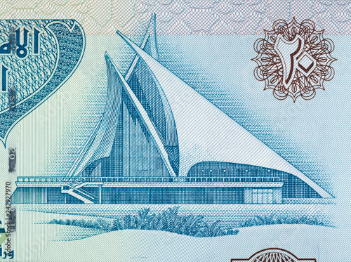 Dubai Creek Golf and Yacht Club on UAE 20 dirham note. United Arab Emirates AED currency money close up..