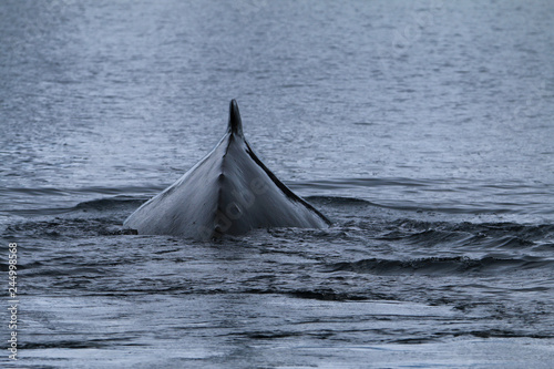 wystający z wody grzbiet wieloryba kaszalota pływającego na wolności u wybrzeży antarktydy
