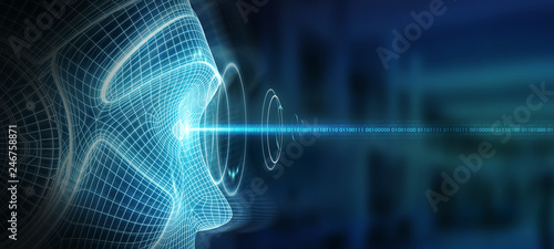 Robotic woman cyborg face representing artificial intelligence 3D rendering