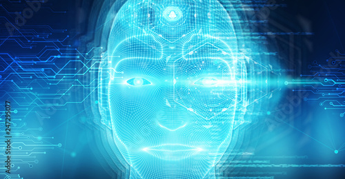 Robotic man cyborg face representing artificial intelligence 3D rendering
