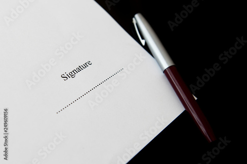 Close Up Shot of a Contract Document with Signature Section and Pen