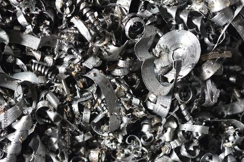 A lot of metal shavings after working on a milling machine or CNC machine. Metal shavings texture