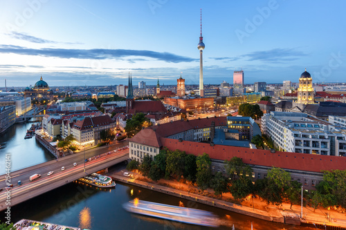 Berlin Skyline Fernsehturm Rotes Rathaus Abend Wahrzeichen Deutschland Stadt