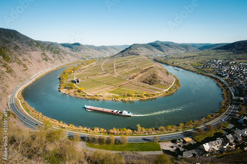 Moselle river bend with the historic town of Bremm, Rheinland-Pfalz, Germany