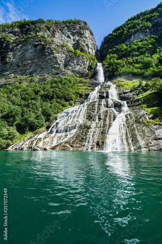 Close up of the Friar (or the Suitor) waterfall, one of the most scenic waterfall of the Geirangerfjord, Sunnmore, More og Romsdal, Norway