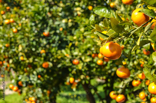 Mandarynki sad drzewo mandarynkowe owoce rosnące na drzewie