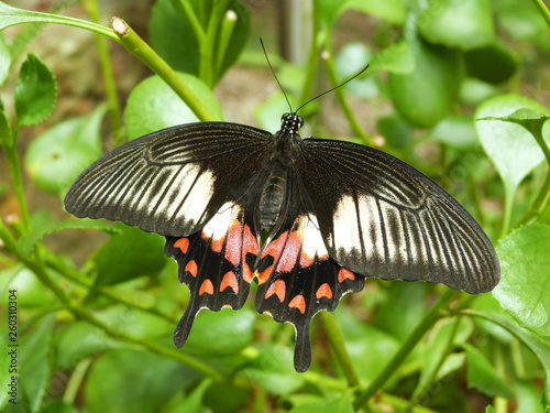 Black Swordtail Butterfly tropical species with red heart spots (Graphium colonna)
