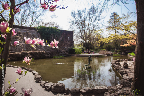 Beautiful sunny spring day in japanese garden in Budapest