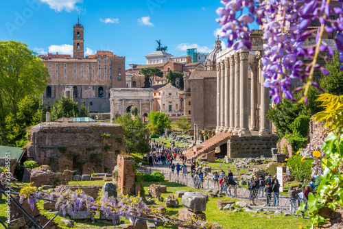 The Roman Forum during spring season in a sunny day. Rome, Italy.