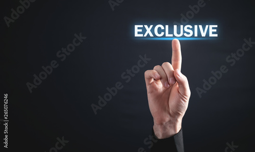 Man hand touch in Exclusive word.
