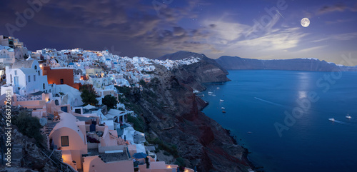 Beautiful view over Santorini Oia at full moon