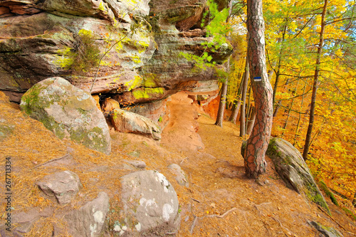 Altschlossfelsen im Dahner Felsenland im Herbst - Altschlossfelsen rock in Dahn Rockland, Germany