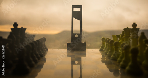 chess board game concept of business ideas and competition and strategy ideas. Chess figures on a chessboard outdoor sunset background. Selective focus