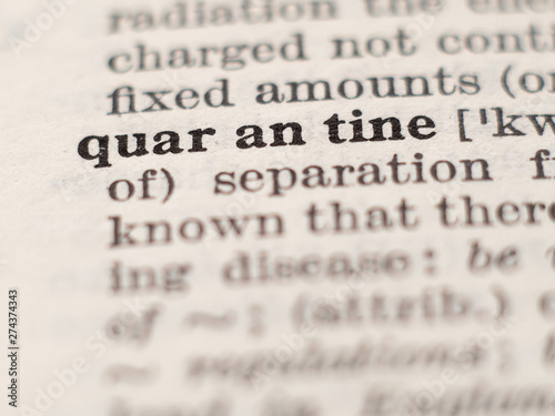 Dictionary definition of word quarantine, selective focus.