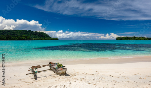 Port Orly sandy beach with palm trees, Espiritu Santo Island, Vanuatu.