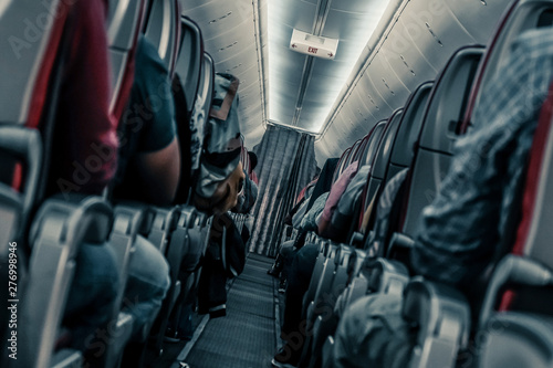 Plane danger. Aircraft emergency. Passengers in a turbulence area