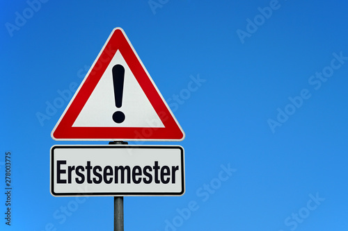 Erstsemester mit Achtung Schild