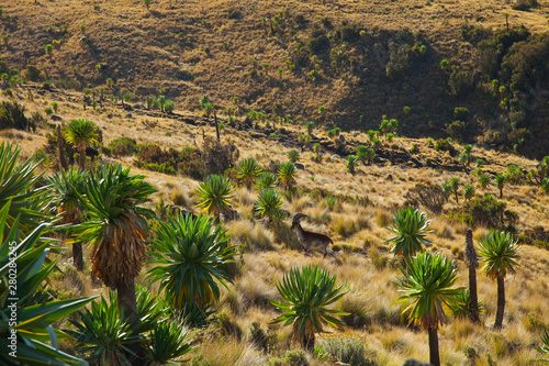 Cabra Ibex Walia y Lobelias gigantes, Montañas Simien, Etiopia, Africa