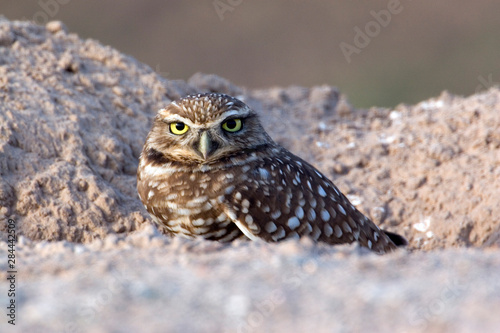 USA - California - Imperial County - Salton Sea area - Burrowing Owl sitting at entrance to burrow at dusk