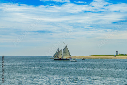 wo-masted yacht and Beautiful landscape of ocean beach Cape cod Massachusetts