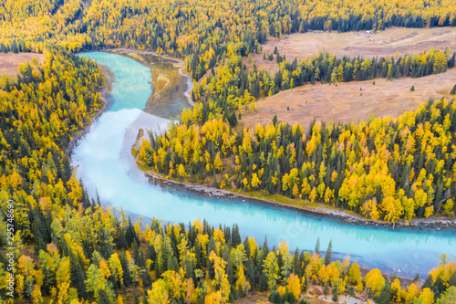 xinjiang kanas river landscape in autumn