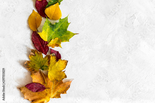 Dekoracja z liści na jasnym tle z miejscem na napis