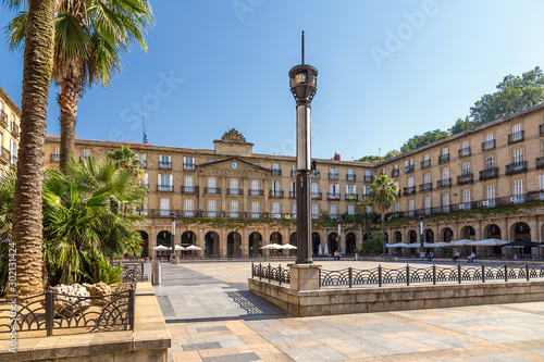Bilbao, Spain. Plaza Nueva (New Square) and the building of the Academy of the Basque Language, 1890